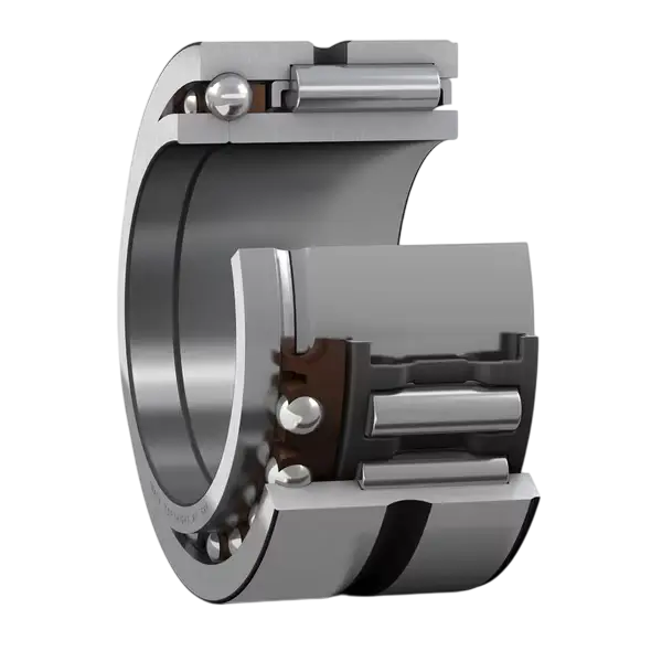 Los rodamientos de aguja combinados integran un rodamiento radial de agujas con un rodamiento axial, permitiendo soportar tanto cargas radiales como axiales en una única unidad. Son ideales para aplicaciones donde se requieren ambas capacidades de carga en un espacio compacto. Estos rodamientos se usan comúnmente en mecanismos de transmisión, maquinaria pesada, y sistemas automotrices.