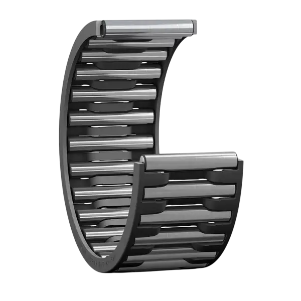 Los rodamientos de aguja con jaula de agujas sin pista interna están formados por agujas alineadas mediante una jaula, mejorando la distribución de cargas. Al no tener pista interna, se optimiza el espacio y peso, permitiendo un diseño compacto. Este tipo es adecuado para aplicaciones con limitaciones de espacio y cargas radiales moderadas. Se usa en motores, sistemas de dirección y mecanismos de transmisión donde se prioriza eficiencia y tamaño reducido.